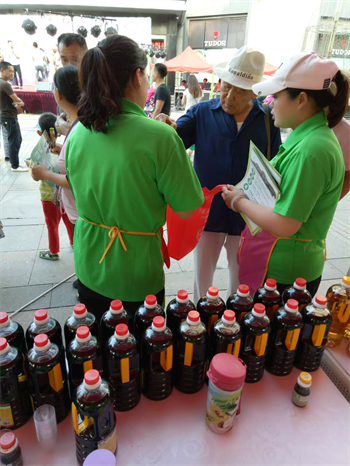 為了回饋和感謝新老顧客的支持與厚愛(ài),我們特別推出全場(chǎng)八折的優(yōu)惠政策,只為服務(wù)大眾,讓更多的市民吃上綠色、健康的調(diào)味品。夏日炎炎擋不住廣大市民購(gòu)買(mǎi)綠業(yè)春醬油醋的熱情,火爆全場(chǎng)。我們銷(xiāo)售人員和宣傳人員熱情主動(dòng)的給顧客介紹產(chǎn)品的特點(diǎn),零添加、純自然的特性受到廣大市民的高度認(rèn)可。